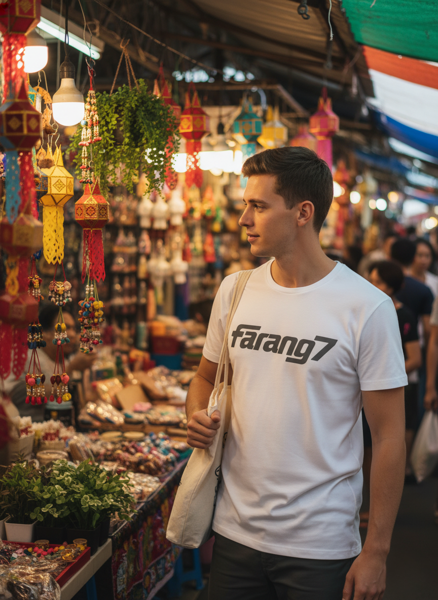 Fabriqué en 100% coton de qualité premium, ce t-shirt offre un confort exceptionnel même sous le climat tropical. Le blanc classique, couleur symbolique en Thaïlande, apporte fraîcheur et élégance à votre style quotidien. Le logo Farang7 est imprimé avec soin dans nos ateliers à Bangkok, garantissant une finition impeccable.